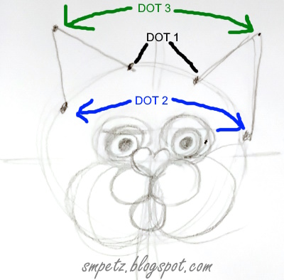 the head). Connect the dots, for the sides of the inside of the ear, and follow