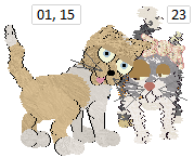 Moopy (left) is displaying the dog SM 16, while Twitchy (right) is displaying the cat move 18