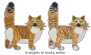 Smoke amber looks like regular Amber/Light Amber, but with a lighter undercoat. This can be represented by colouring the most longhaired areas of the cat (ruff, undersides, leg feathers, backside of tail where applicable)