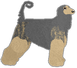 Note: Afghan hounds, due to their very long coat, can only show visible tipping along the more shorthaired spine/neck/head areas, while the undercoat/base coat flow together on the longhaired areas.