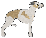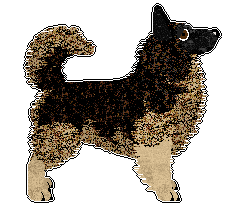 | A chocolate sable dog in with shading in the minimal pattern and a small mask in the matching liver pigment | A red sable dog in with shading in the maximum pattern, with urajiro markings and a small mask in the matching black pigment (please note that the solid ears seen here are part of the sable pattern, not the mask - fully masked ears would fall under the standard mask standard, rather than small | A grey grizzle dog with medium shading and trim markings, with white in the trim pattern and a small mask in the matching black pigment |