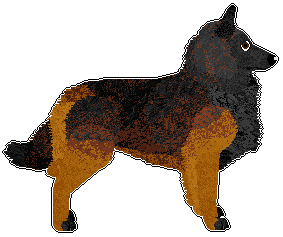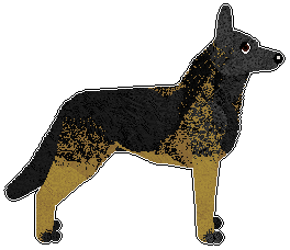 | A red sable dog with shading in the maximum pattern and an extended mask in the matching black pigment | A red sable dog with shading in the maximum pattern and an extended mask in the matching black pigment | A red sable dog with shading in the maximum pattern, white in the trim pattern and an extended mask in the matching black pigment |
